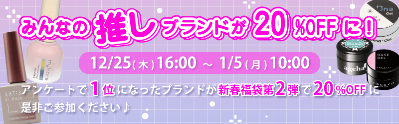 アンケートで1位に選ばれたブランドが新春企画第2弾で20%OFFになります。 ぜひアンケートにご参加ください。